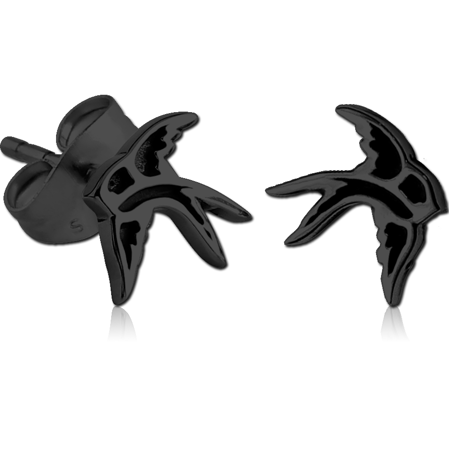 BLACK PVD COATED SURGICAL STEEL EAR STUDS PAIR – BIRD