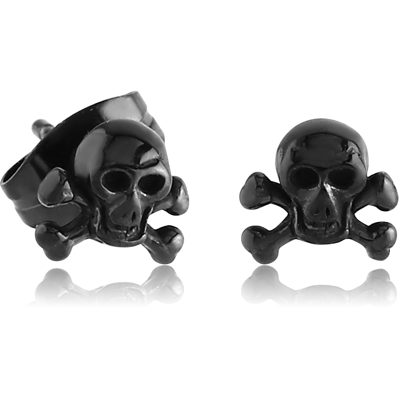 BLACK PVD COATED SURGICAL STEEL EAR STUDS PAIR – DANGER