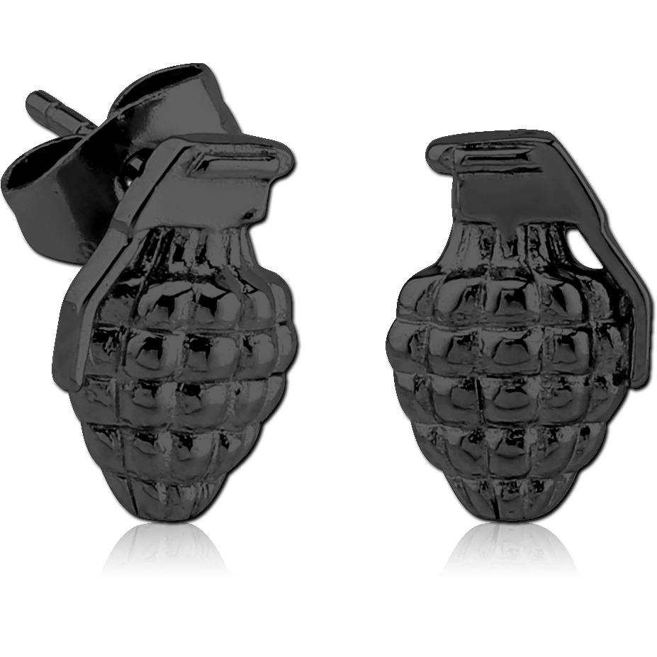 BLACK PVD COATED SURGICAL STEEL EAR STUDS PAIR – GRENADE