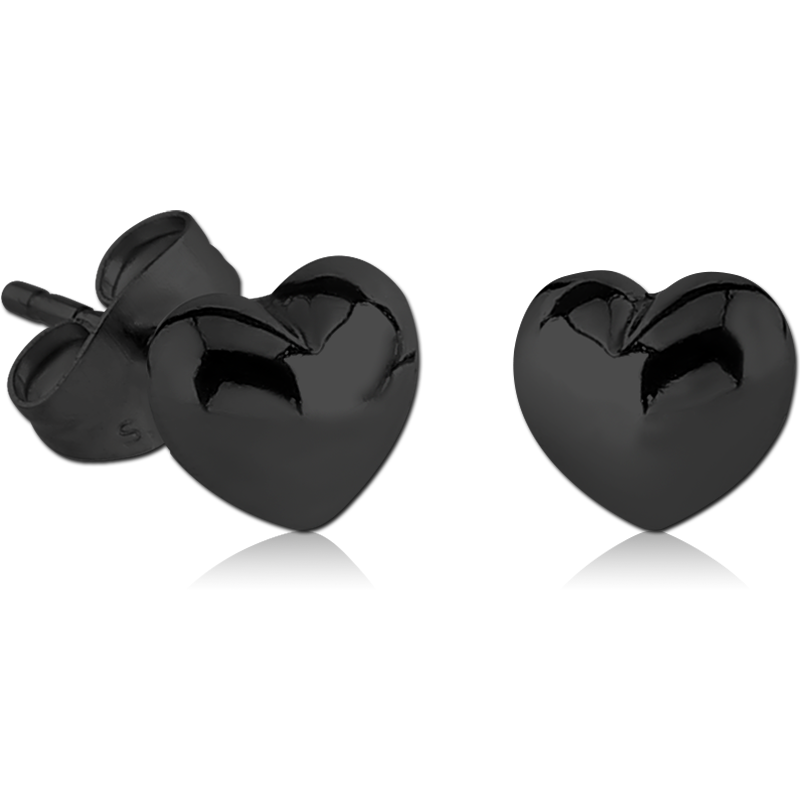 BLACK PVD COATED SURGICAL STEEL EAR STUDS PAIR – HEART