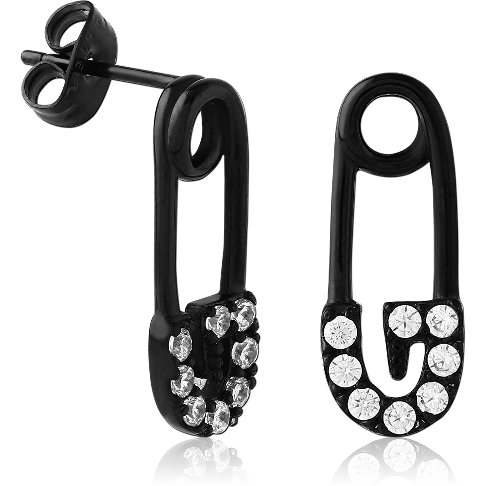 BLACK PVD COATED SURGICAL STEEL JEWELED EAR STUDS PAIR