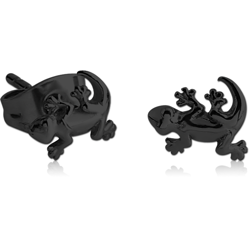 BLACK PVD SURGICAL STEEL EAR STUDS PAIR – SALAMANDER