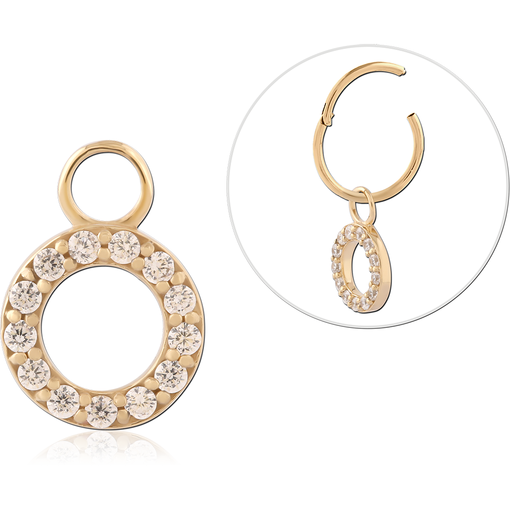 GOLD PVD 18K COATED SURGICAL STEEL JEWELED CHARM