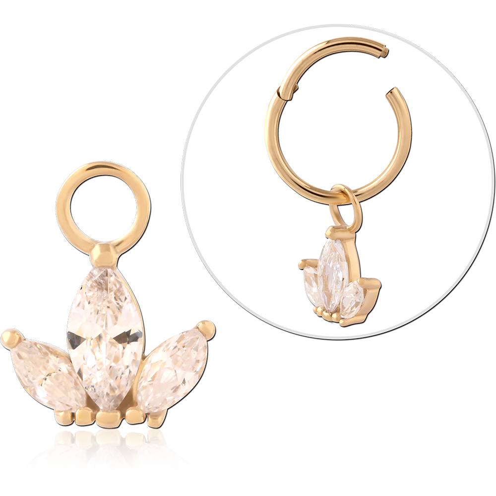 GOLD PVD 18K COATED SURGICAL STEEL JEWELED CHARM