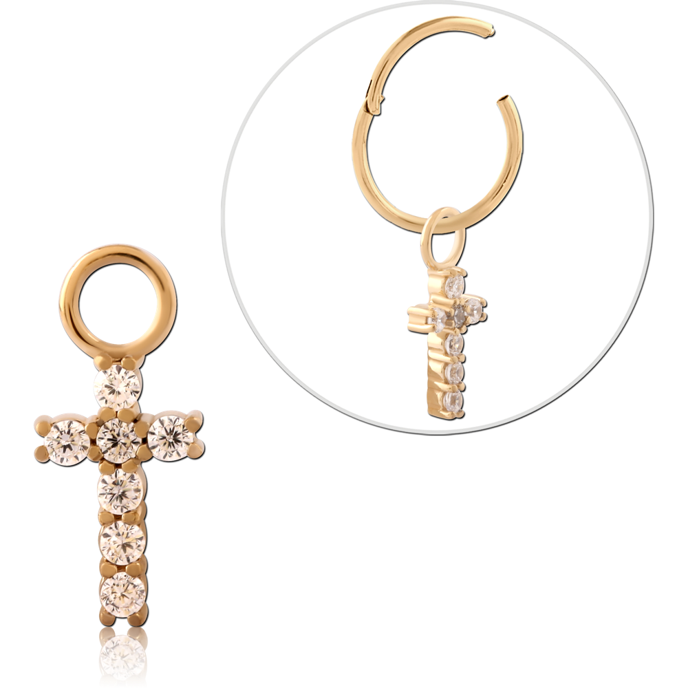 GOLD PVD 18K COATED SURGICAL STEEL JEWELED CHARM
