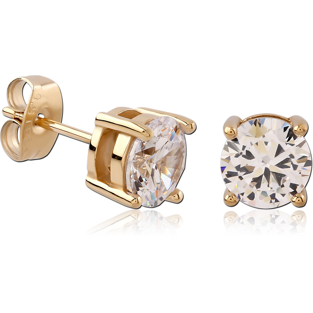 GOLD PVD 18K COATED SURGICAL STEEL JEWELED EAR STUDS PAIR