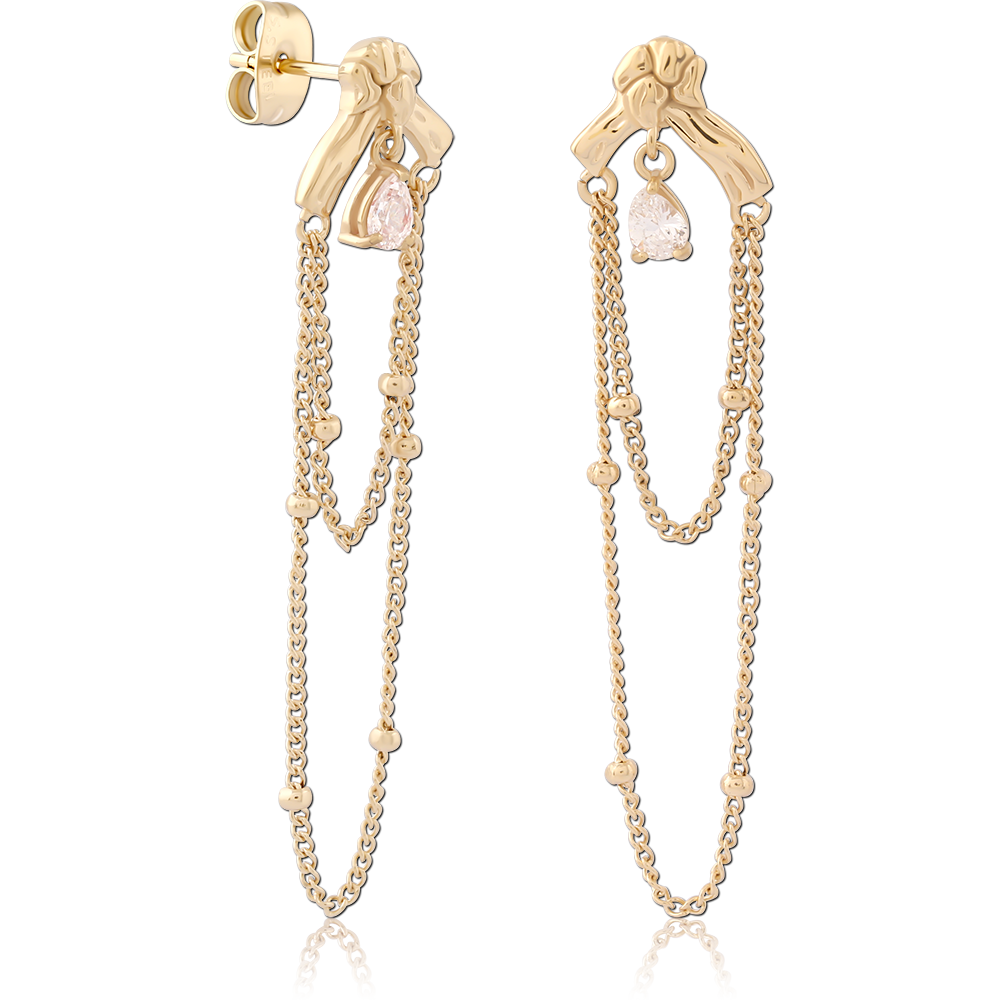 GOLD PVD 18K COATED SURGICAL STEEL JEWELED EAR STUDS PAIR