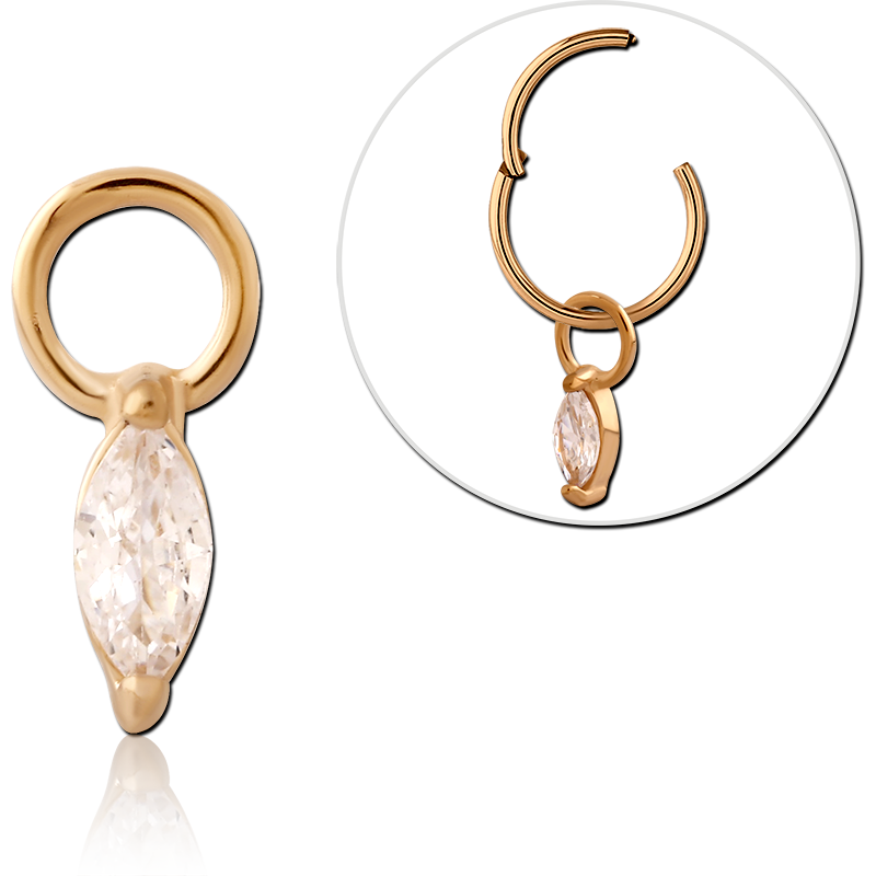 GOLD PVD 18K COATED SURGICAL STEEL SLIDING JEWELED CHARM FOR HINGED SEGMENT RING