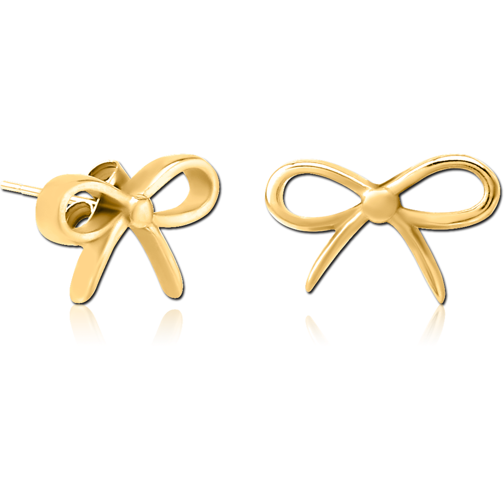 GOLD PVD COATED SURGICAL STEEL EAR STUDS PAIR – BOW
