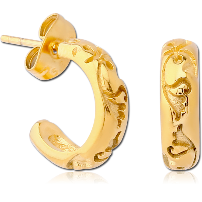 GOLD PVD COATED SURGICAL STEEL EAR STUDS PAIR – HOOP FILIGREE