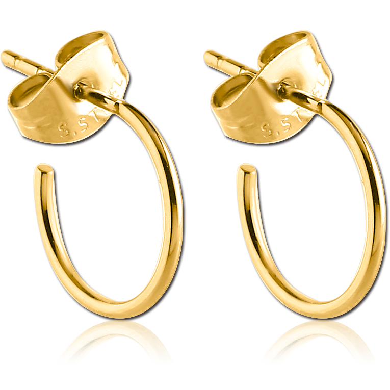 GOLD PVD COATED SURGICAL STEEL EAR STUDS PAIR – HOOP