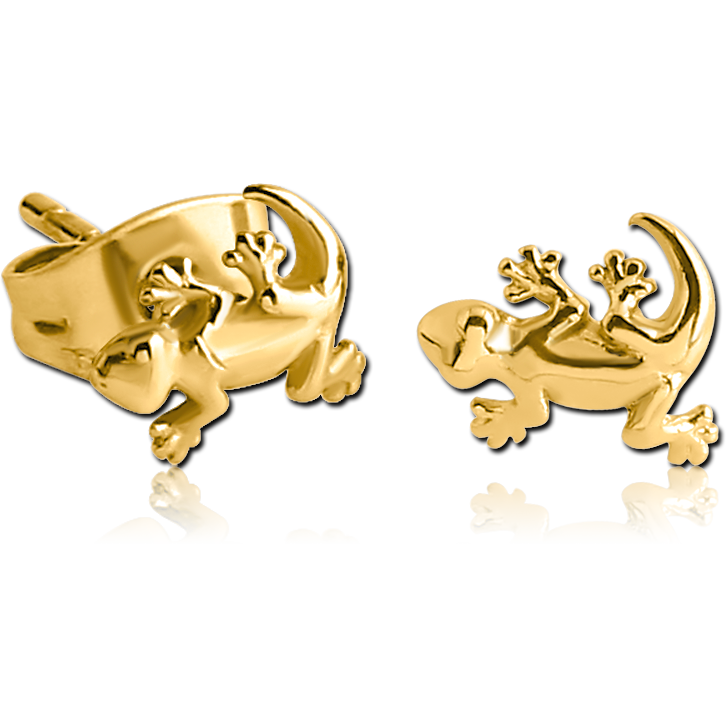 GOLD PVD COATED SURGICAL STEEL EAR STUDS PAIR – SALAMANDER