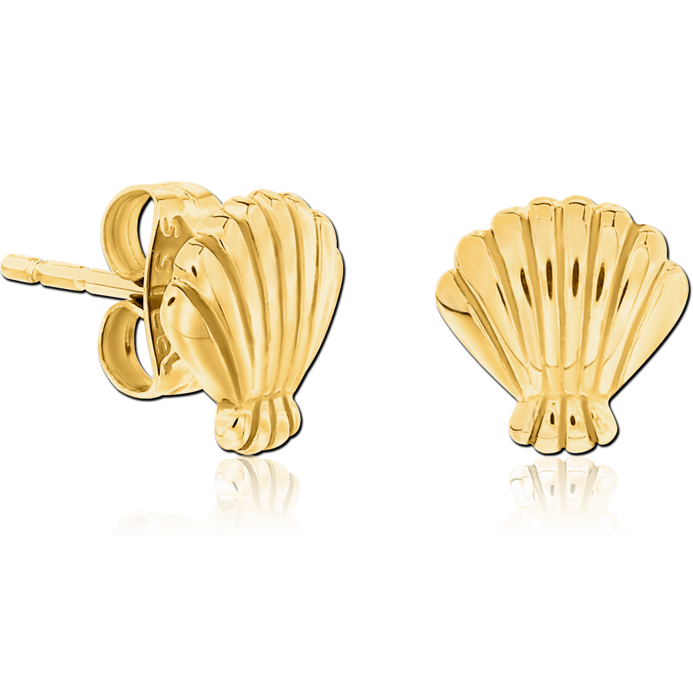 GOLD PVD COATED SURGICAL STEEL EAR STUDS PAIR – SHELL