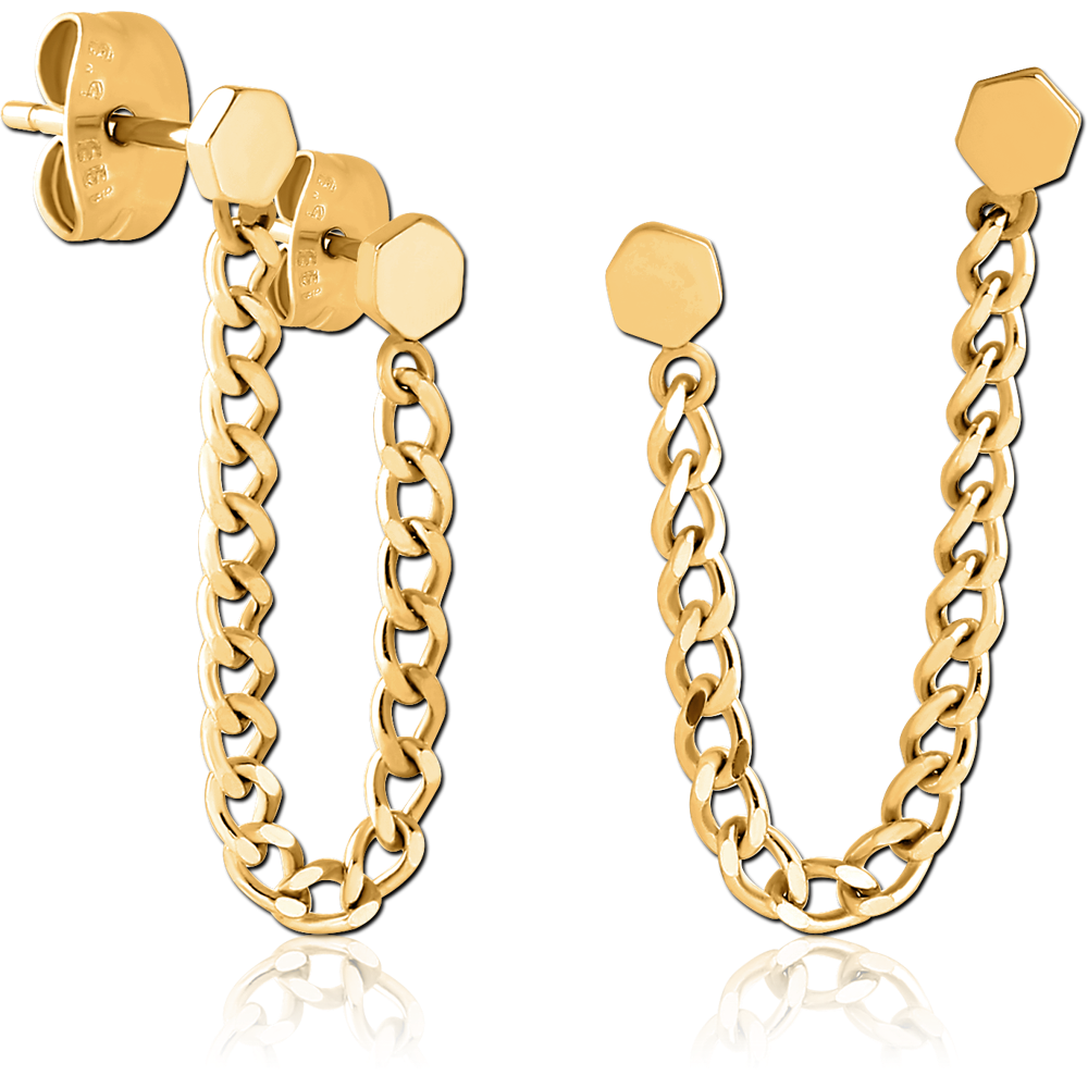 GOLD PVD COATED SURGICAL STEEL EAR STUDS WITH CHAIN
