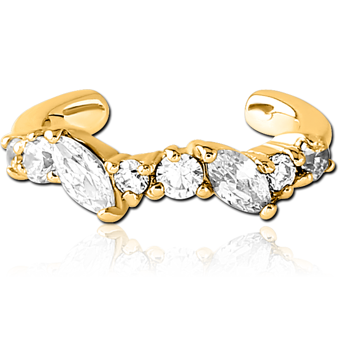 GOLD PVD COATED SURGICAL STEEL JEWELED EAR CUFF