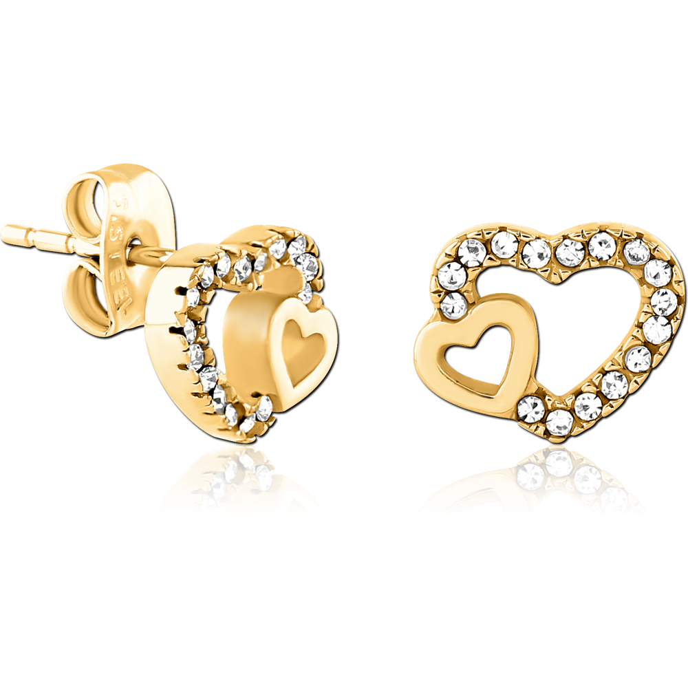 GOLD PVD COATED SURGICAL STEEL JEWELED EAR STUDS PAIR