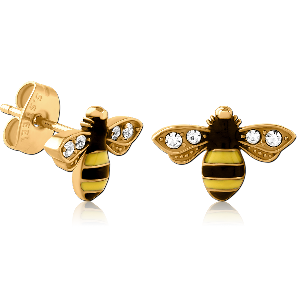 GOLD PVD COATED SURGICAL STEEL JEWELED EAR STUDS PAIR