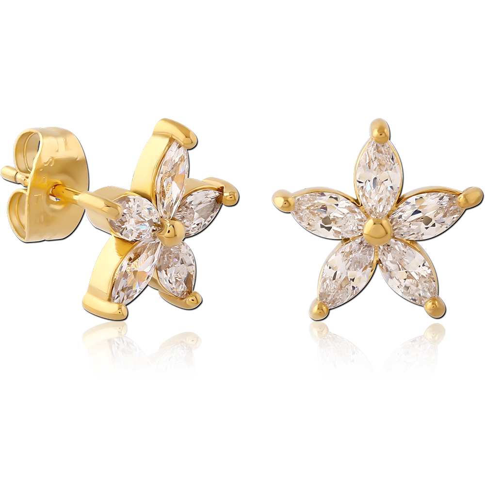 GOLD PVD COATED SURGICAL STEEL JEWELED EAR STUDS PAIR