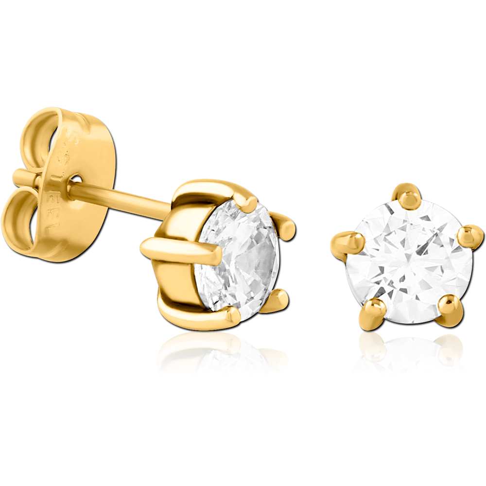 GOLD PVD COATED SURGICAL STEEL JEWELED EAR STUDS PAIR