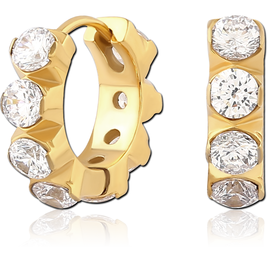 GOLD PVD COATED SURGICAL STEEL JEWELED HUGGIES PAIR