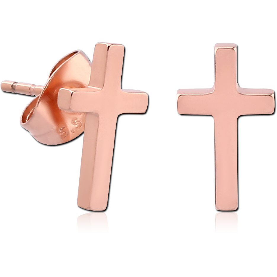 ROSE GOLD PVD COATED SURGICAL STEEL EAR STUDS PAIR – CROSS