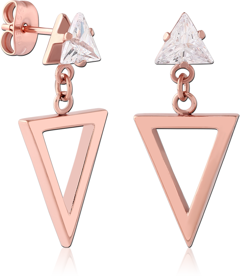 ROSE GOLD PVD COATED SURGICAL STEEL JEWELED CHAIN EAR STUDS PAIR