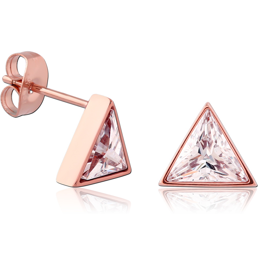 ROSE GOLD PVD COATED SURGICAL STEEL JEWELED CHAIN EAR STUDS PAIR