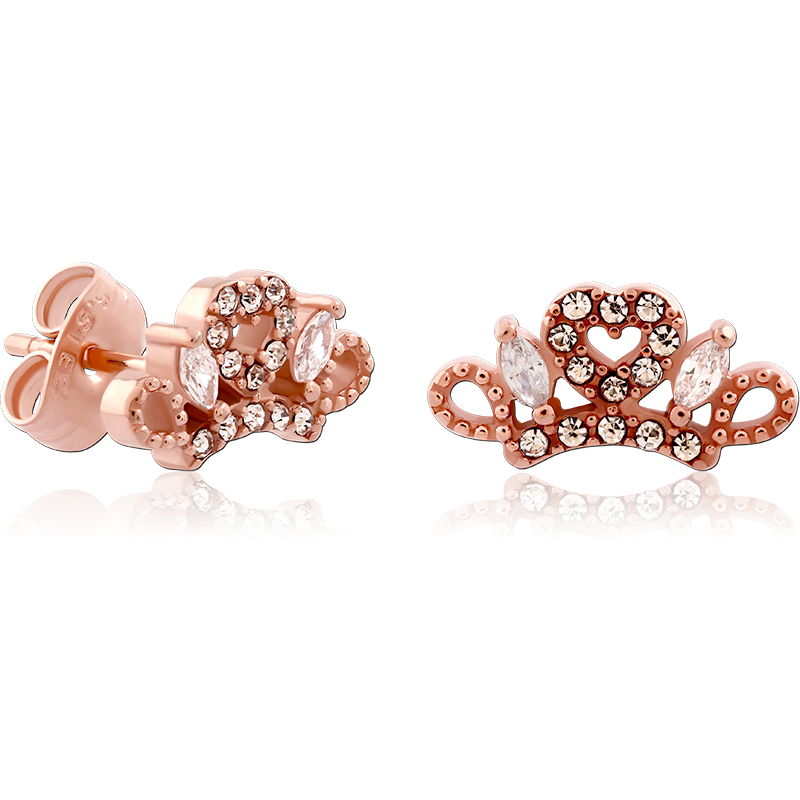 ROSE GOLD PVD COATED SURGICAL STEEL JEWELED EAR STUDS PAIR