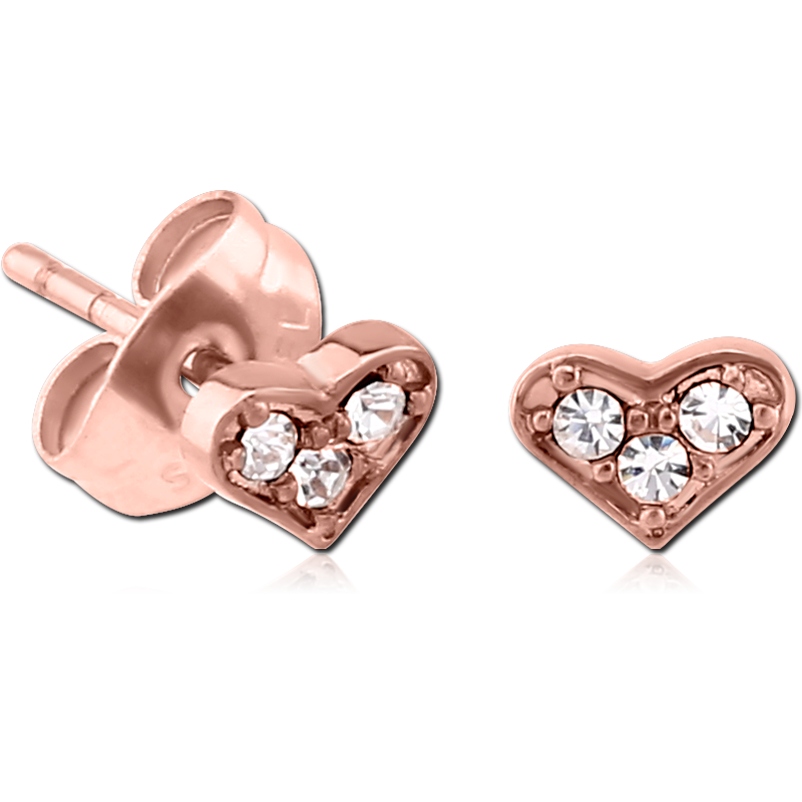 ROSE GOLD PVD COATED SURGICAL STEEL JEWELED EAR STUDS PAIR – HEART