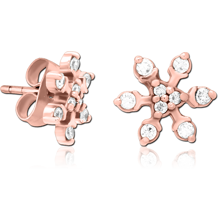 ROSE GOLD PVD COATED SURGICAL STEEL JEWELED EAR STUDS PAIR – SNOWFLAKE
