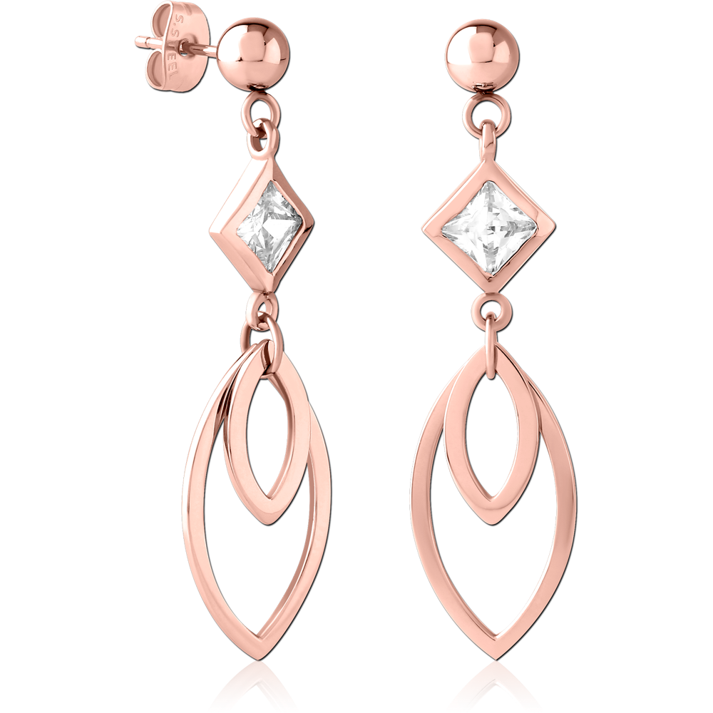 ROSE GOLD PVD COTED SURGICAL STEEL JEWELED EAR STUDS PAIR