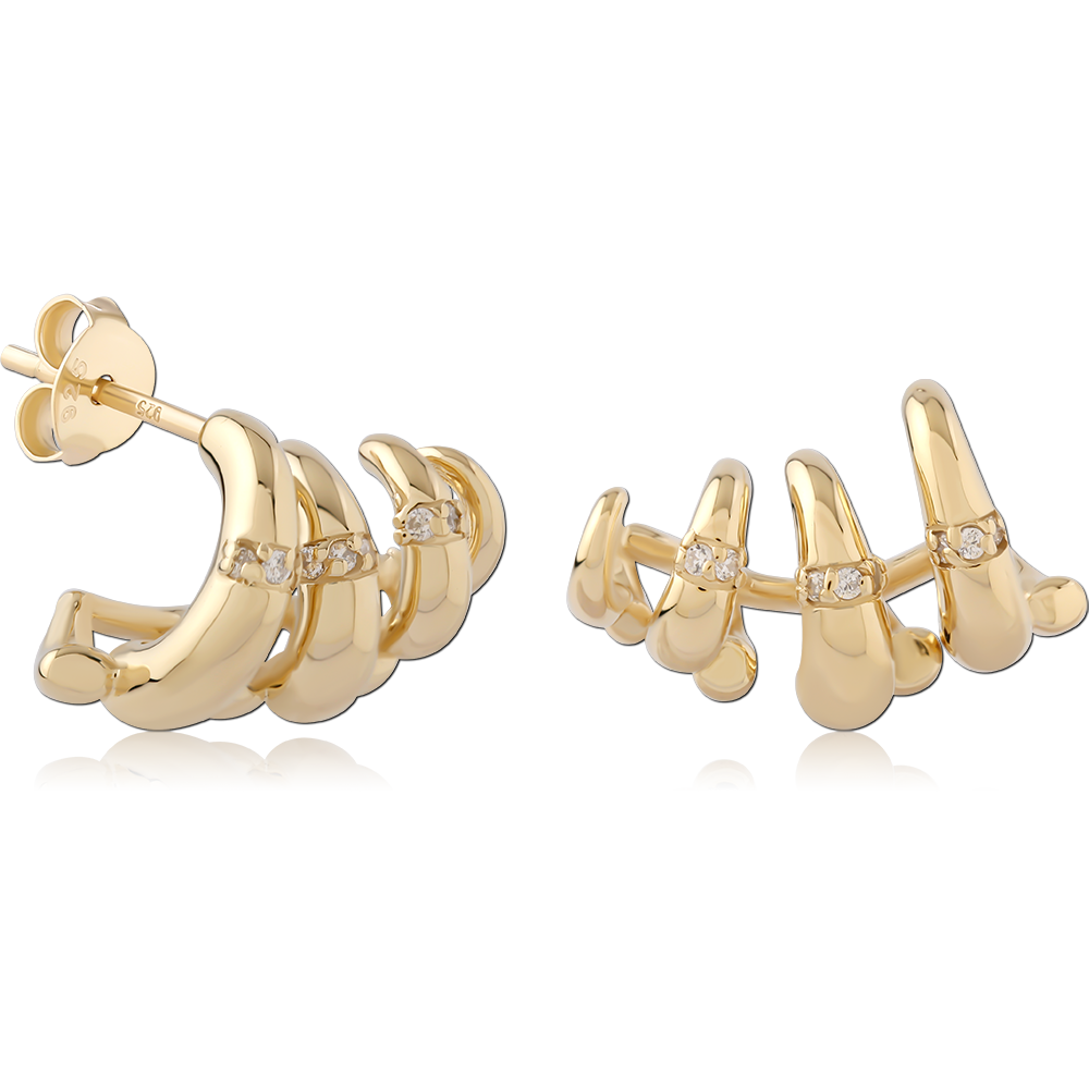STERLING SILVER 925 GOLD PLATED 14K JEWELED EAR STUDS PAIR