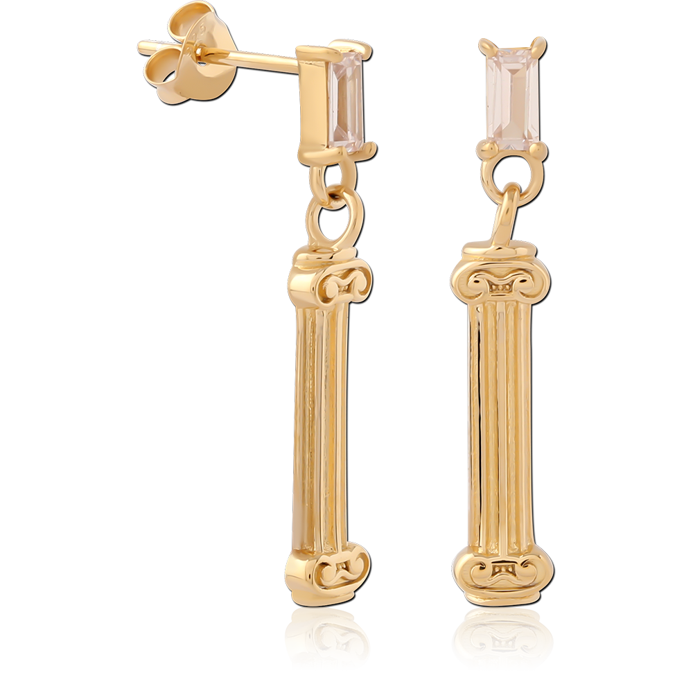 STERLING SILVER 925 GOLD PLATED 14K JEWELED EAR STUDS PAIR