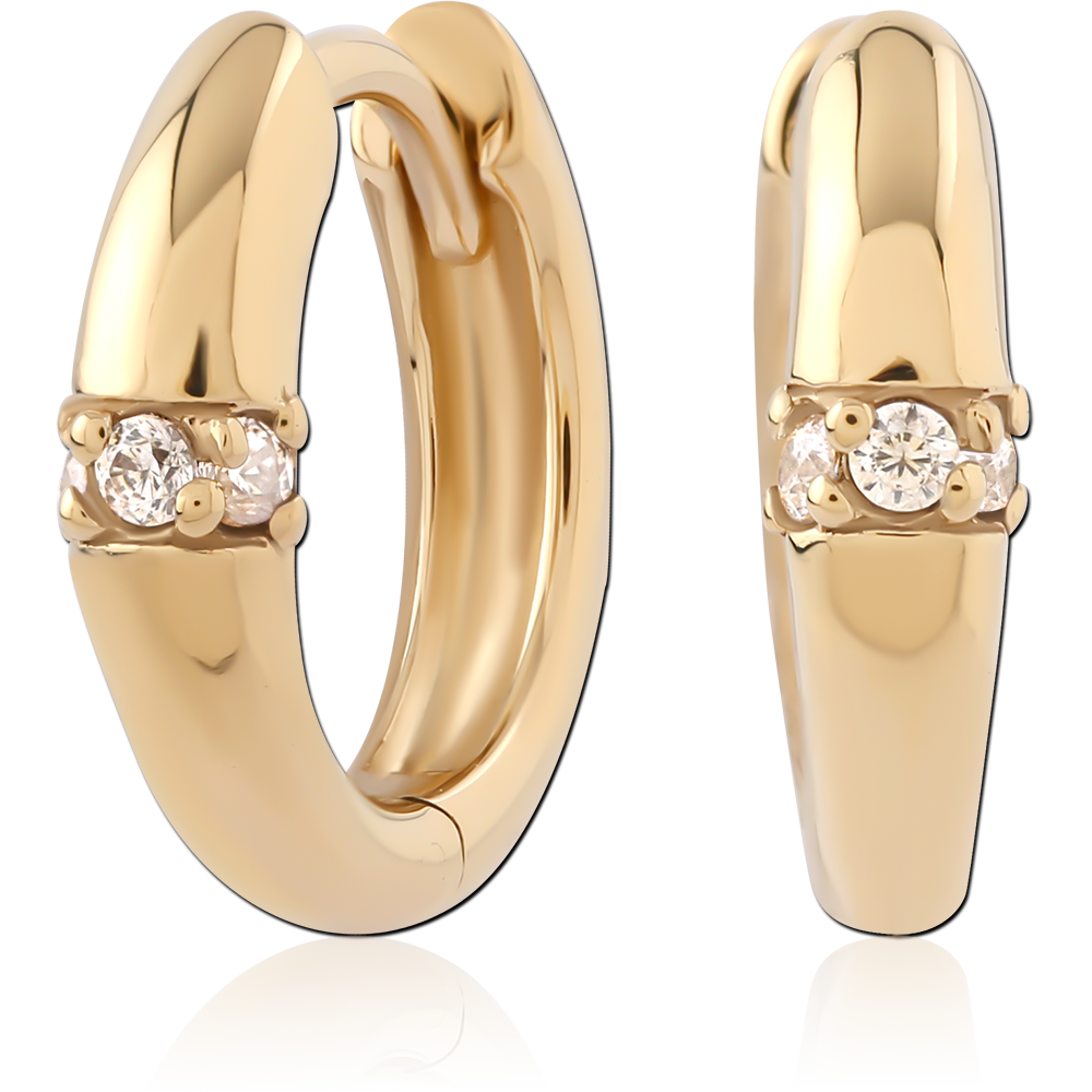 STERLING SILVER 925 GOLD PLATED 14K JEWELED HUGGIES PAIR