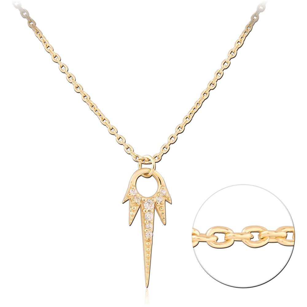 STERLING SILVER 925 GOLD PLATED 14K JEWELED NECKLACE WITH PENDANT