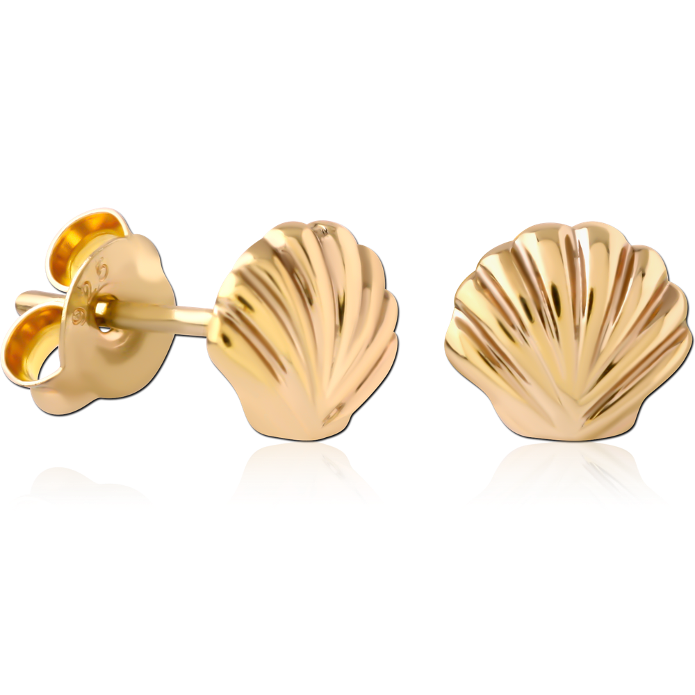 STERLING SILVER 925 18K GOLD PLATED EAR STUDS PAIR – SEA SHELL