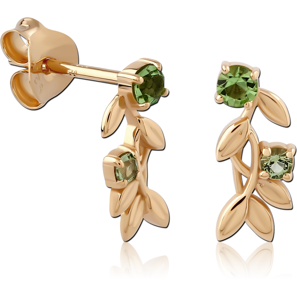 STERLING SILVER 925 18K GOLD PLATED JEWELED EAR STUDS PAIR