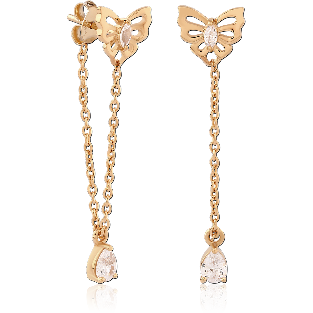 STERLING SILVER 925 18K GOLD PLATED JEWELED EAR STUDS PAIR