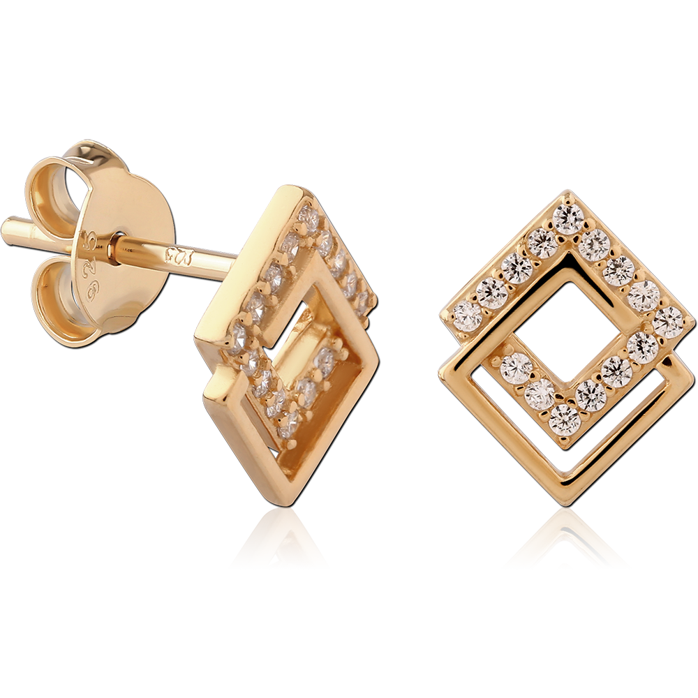 STERLING SILVER 925 18K GOLD PLATED JEWELED EAR STUDS PAIR
