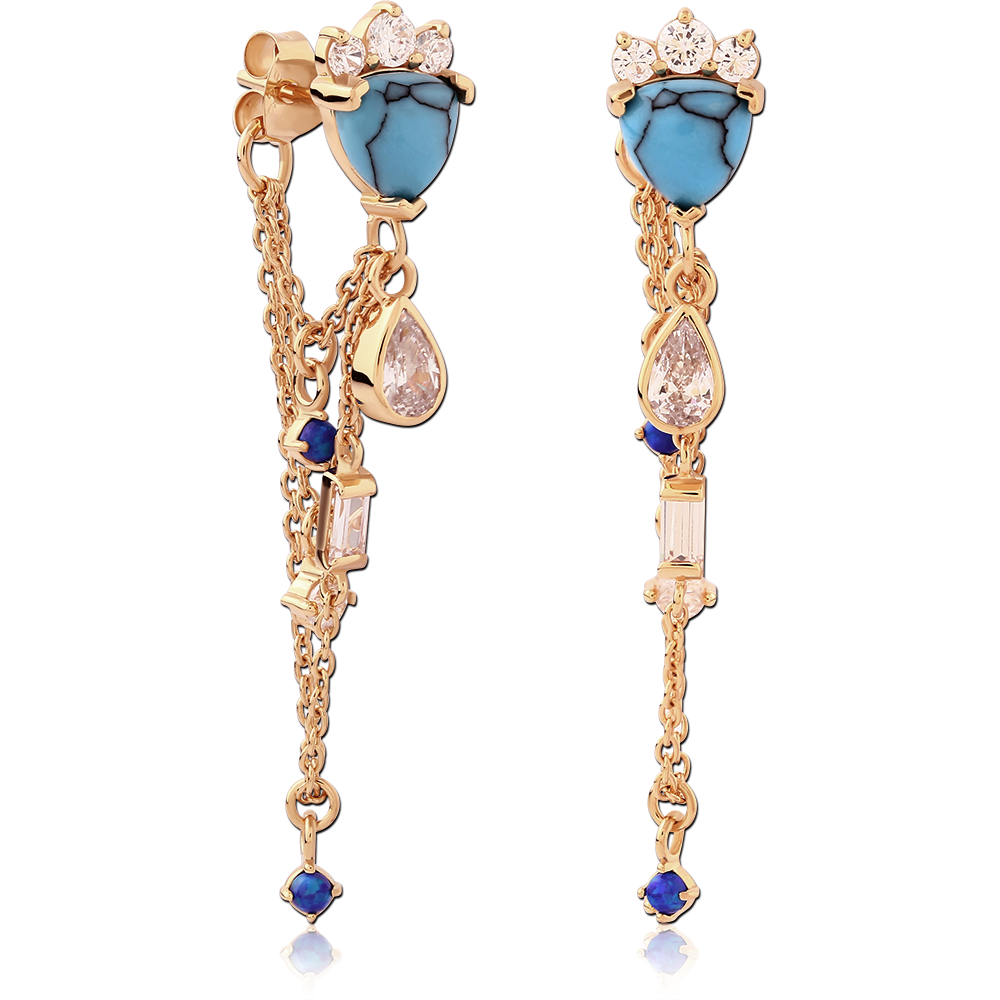 STERLING SILVER 925 18K GOLD PLATED JEWELED EAR STUDS PAIR