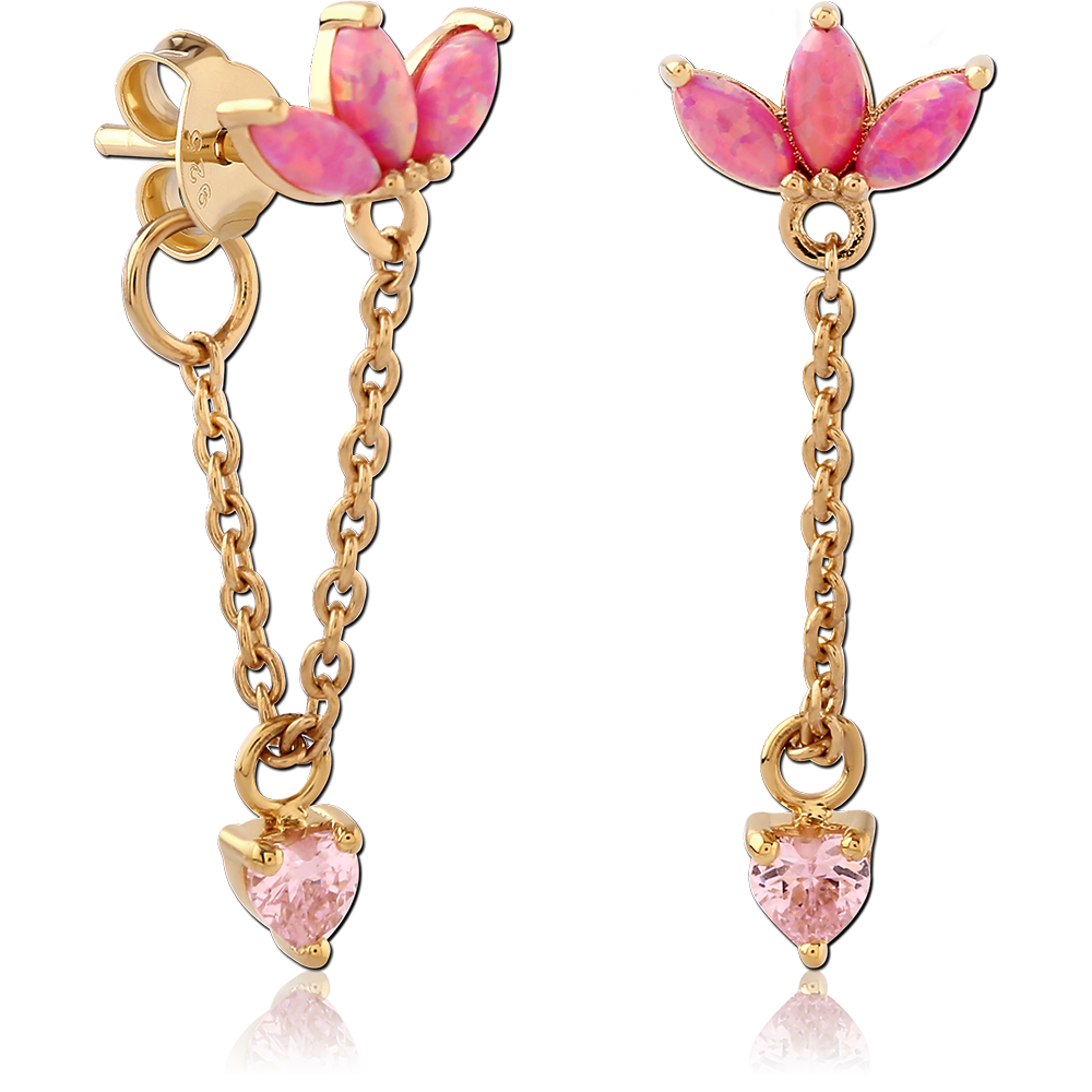 STERLING SILVER 925 18K GOLD PLATED JEWELED EAR STUDS PAIR