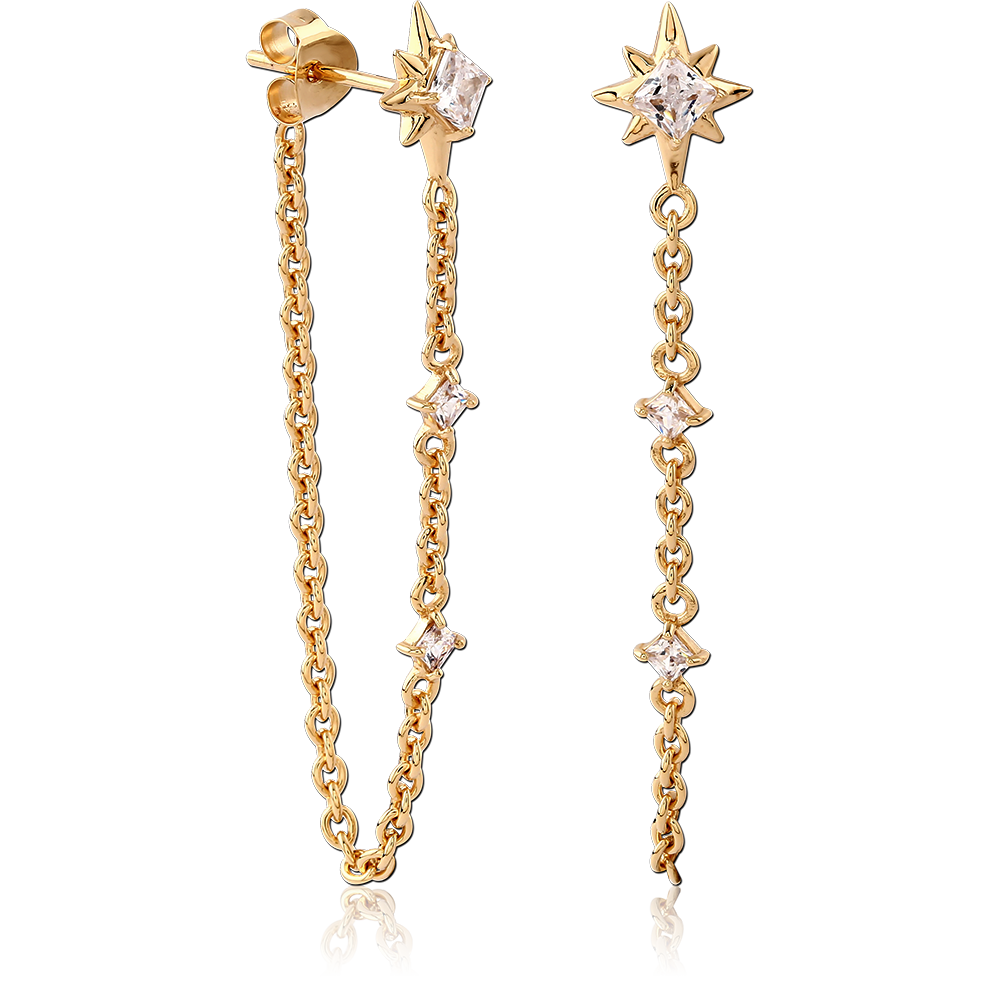 STERLING SILVER 925 18K GOLD PLATED JEWELED EAR STUDS PAIR