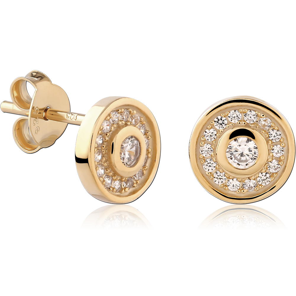 STERLING SILVER 925 18K GOLD PLATED JEWELED EAR STUDS PAIR