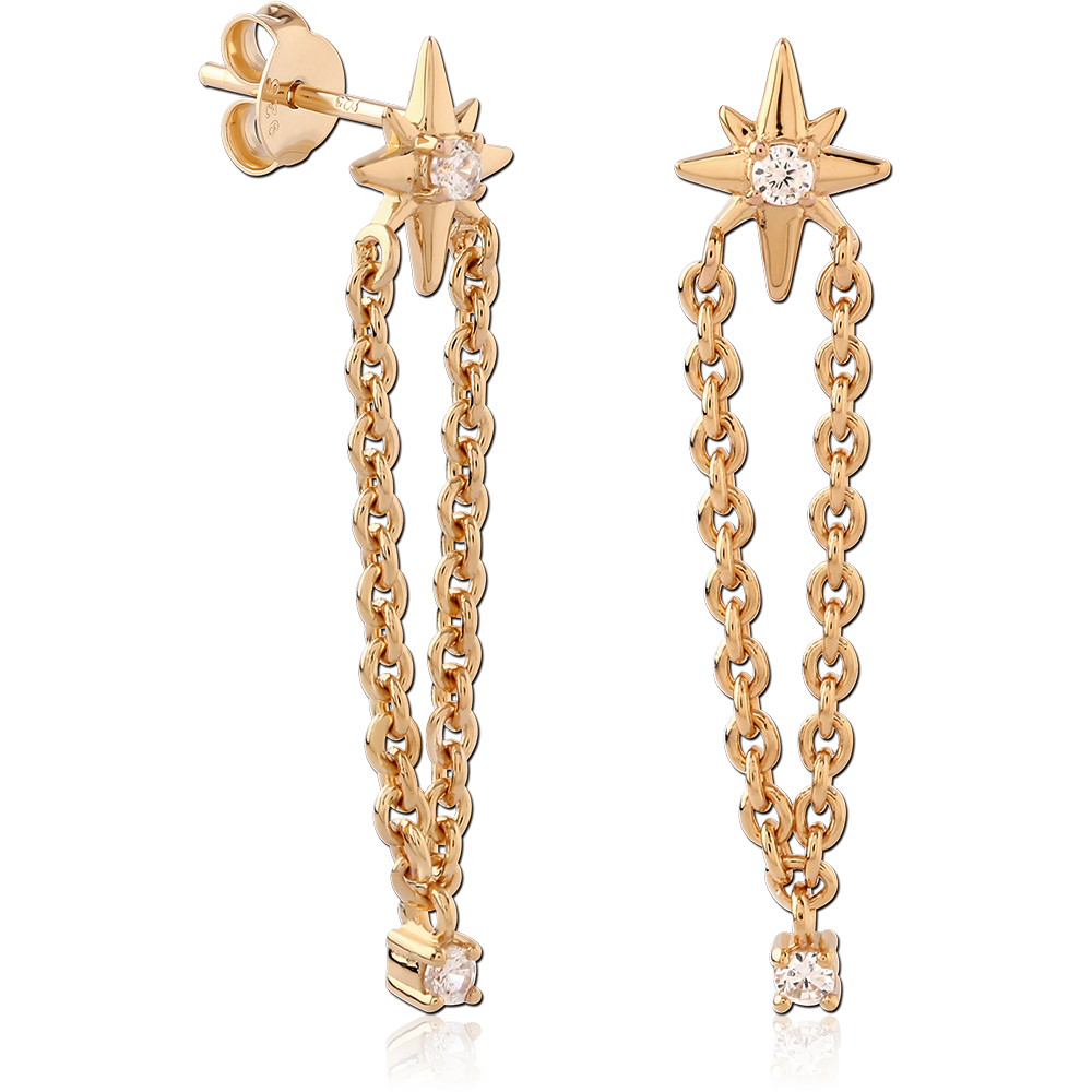 STERLING SILVER 925 18K GOLD PLATED JEWELED EAR STUDS PAIR