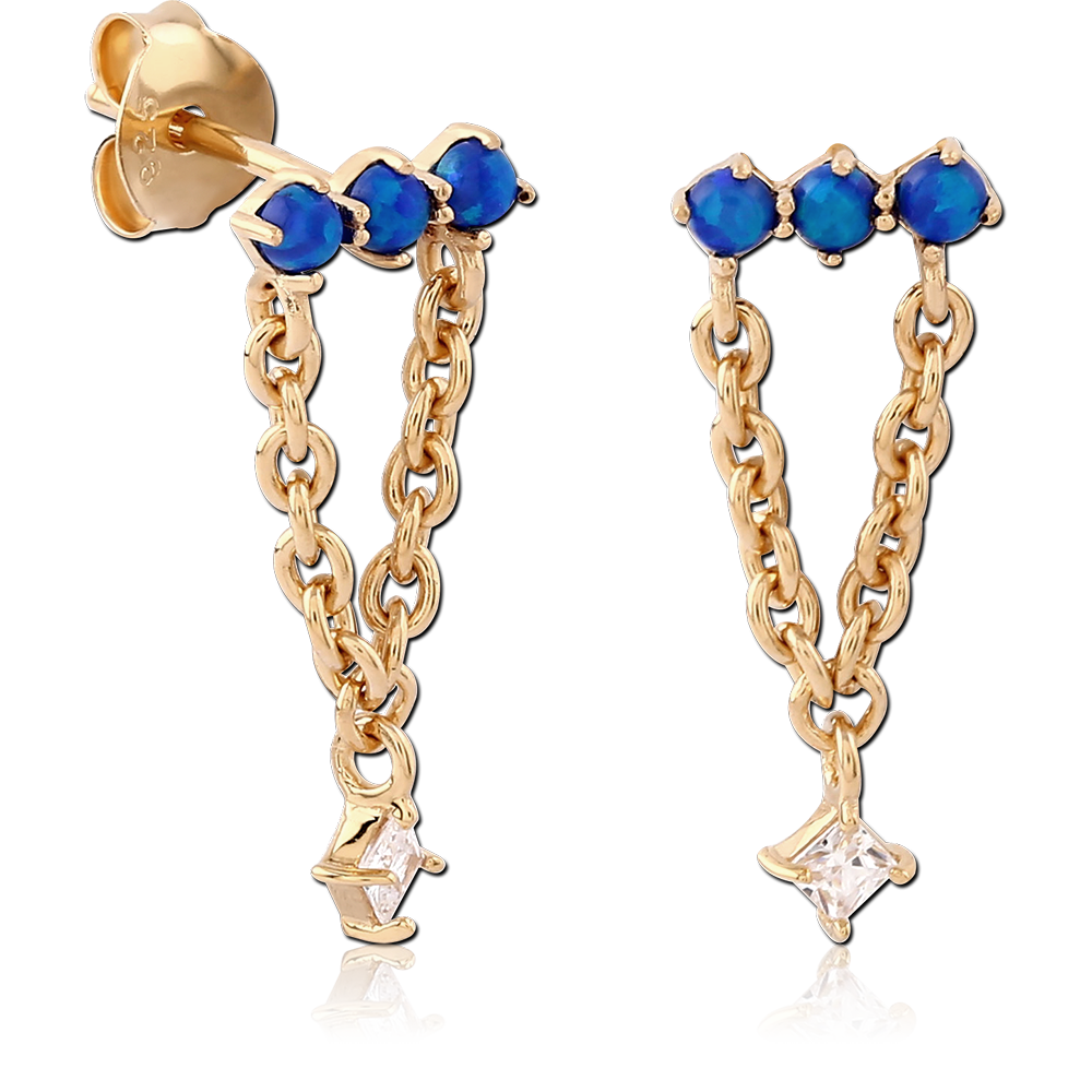 STERLING SILVER 925 18K GOLD PLATED JEWELED EAR STUDS PAIR