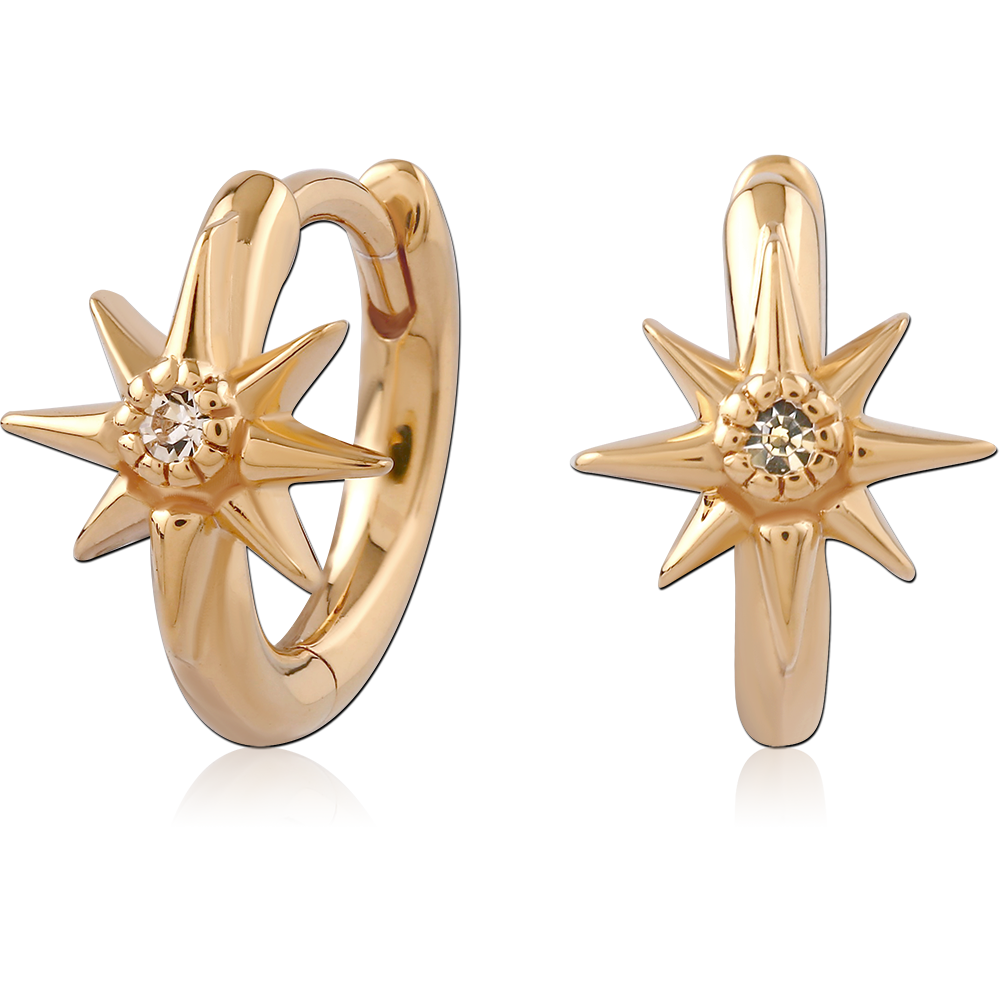 STERLING SILVER 925 18K GOLD PLATED JEWELED HUGGIES PAIR