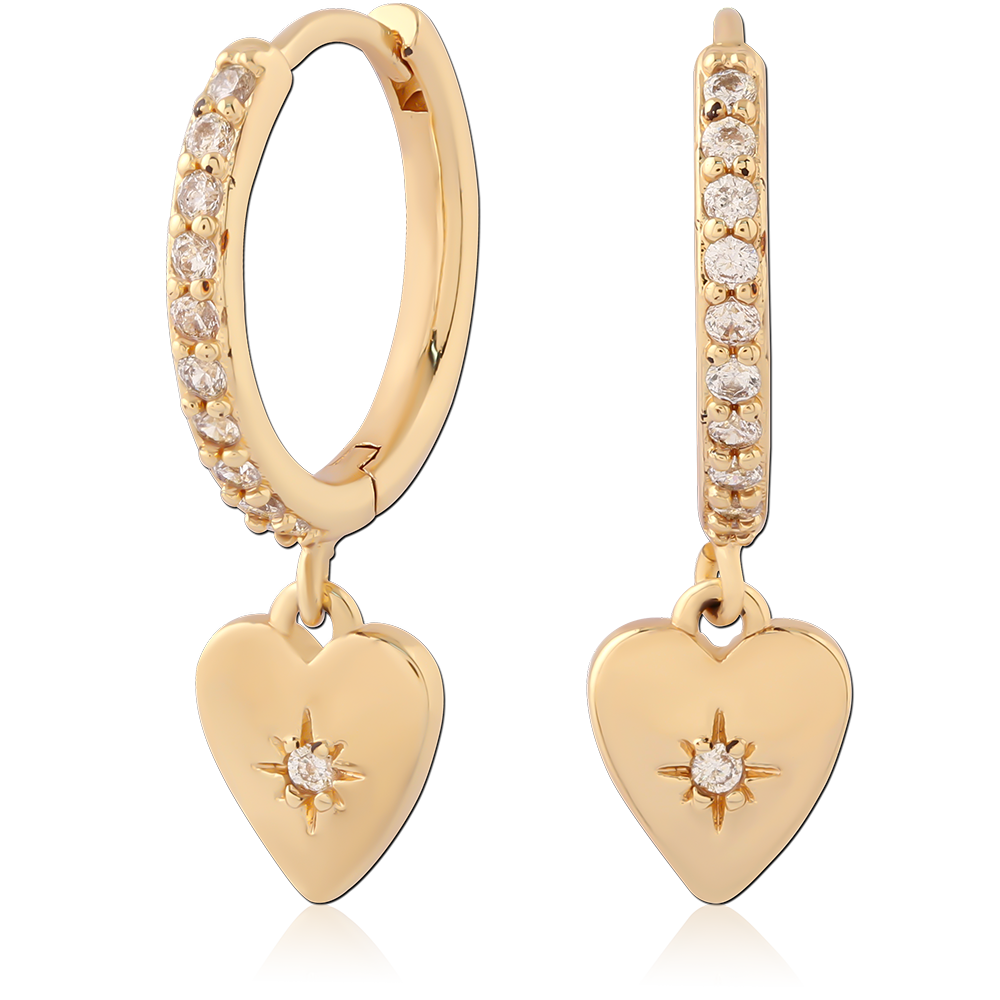 STERLING SILVER 925 GOLD PLATED 18K JEWELED HUGGIES PAIR