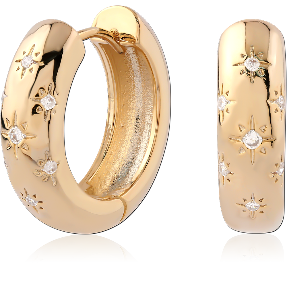 STERLING SILVER 925 GOLD PLATED 18K JEWELED HUGGIES PAIR
