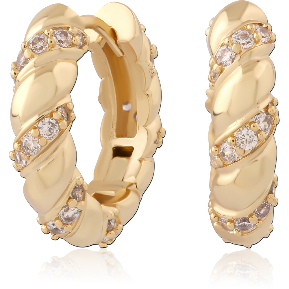 STERLING SILVER 925 GOLD PLATED 18K JEWELED HUGGIES PAIR