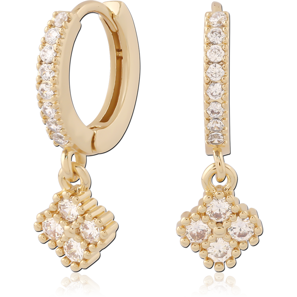 STERLING SILVER 925 GOLD PLATED 18K JEWELED HUGGIES PAIR